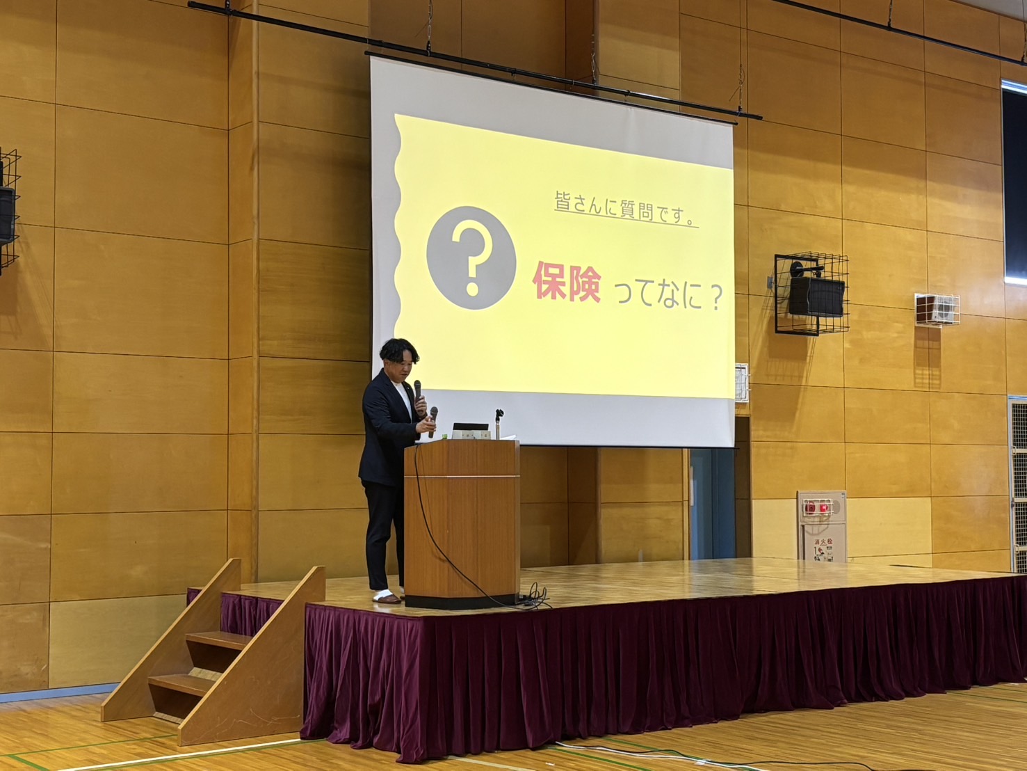 同社は保険代理店を営んでおり、学生とはなじみの薄い保険をわかりやすくクイズ等を交えてご講話いただきました。